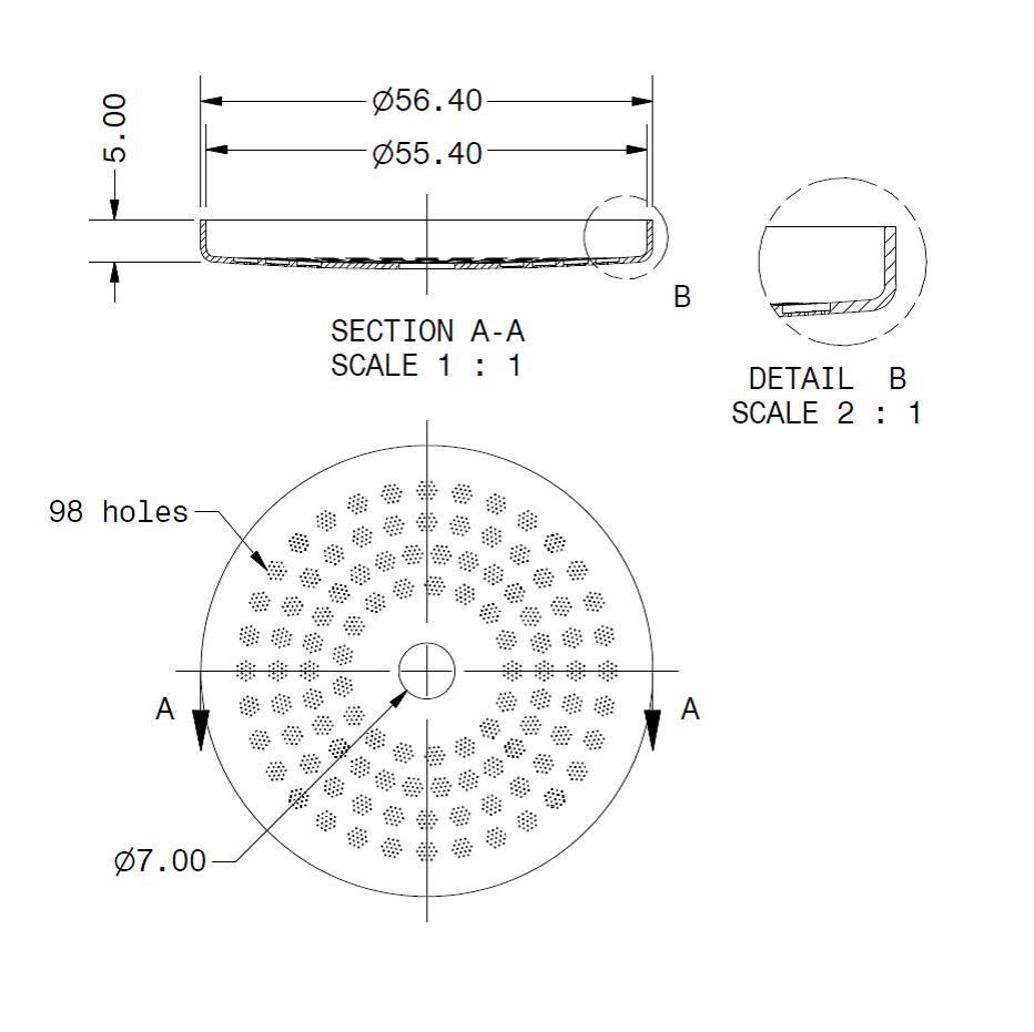 19の極小の孔をもつ3mmの穴が、円状に98個配置されています。